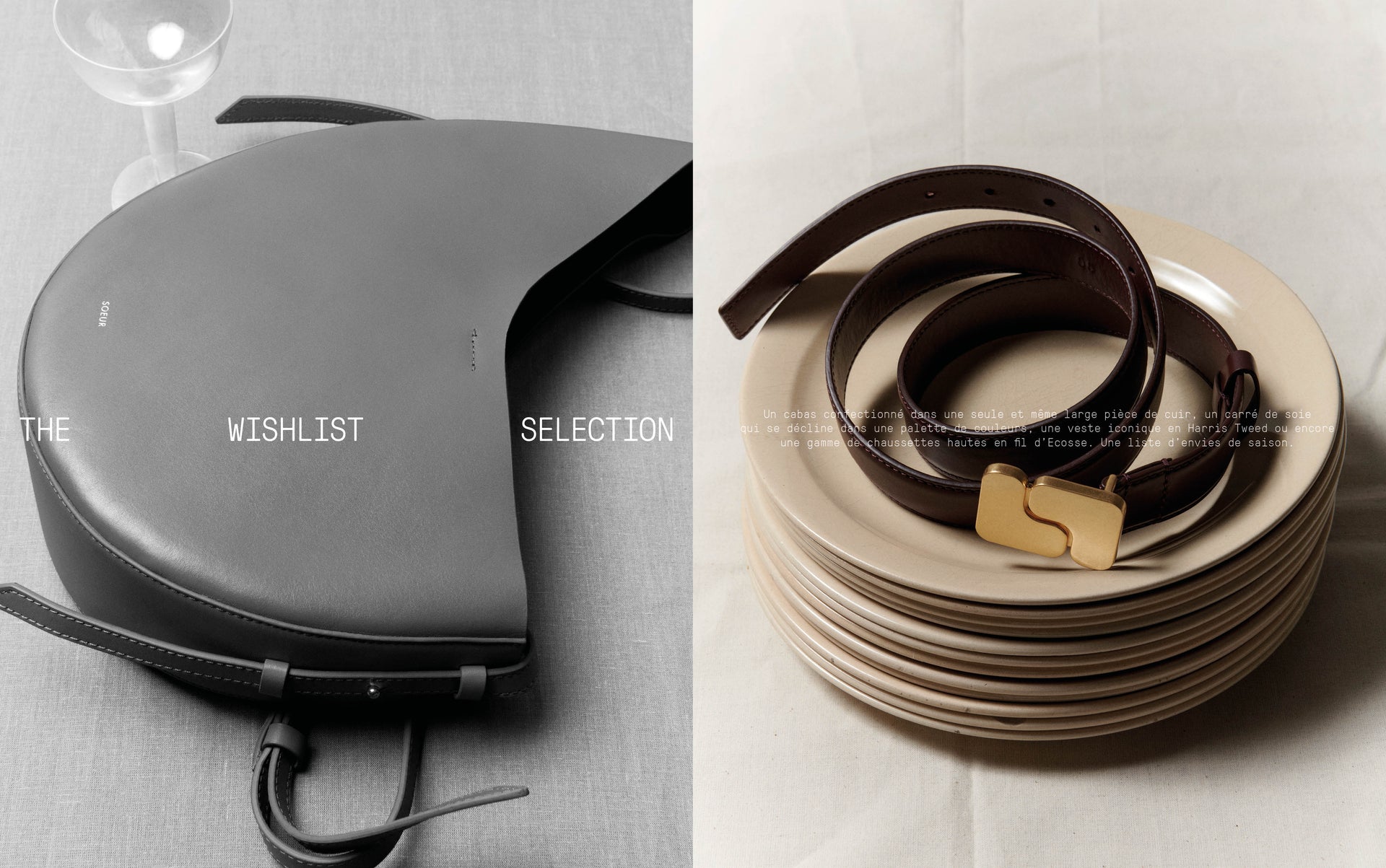 Un cabas confectionné dans une seule et même large pièce de cuir, un carré de soie qui se décline dans une palette de couleurs, une veste iconique en Harris Tweed ou encore une gamme de chaussettes hautes en fil d’Ecosse.