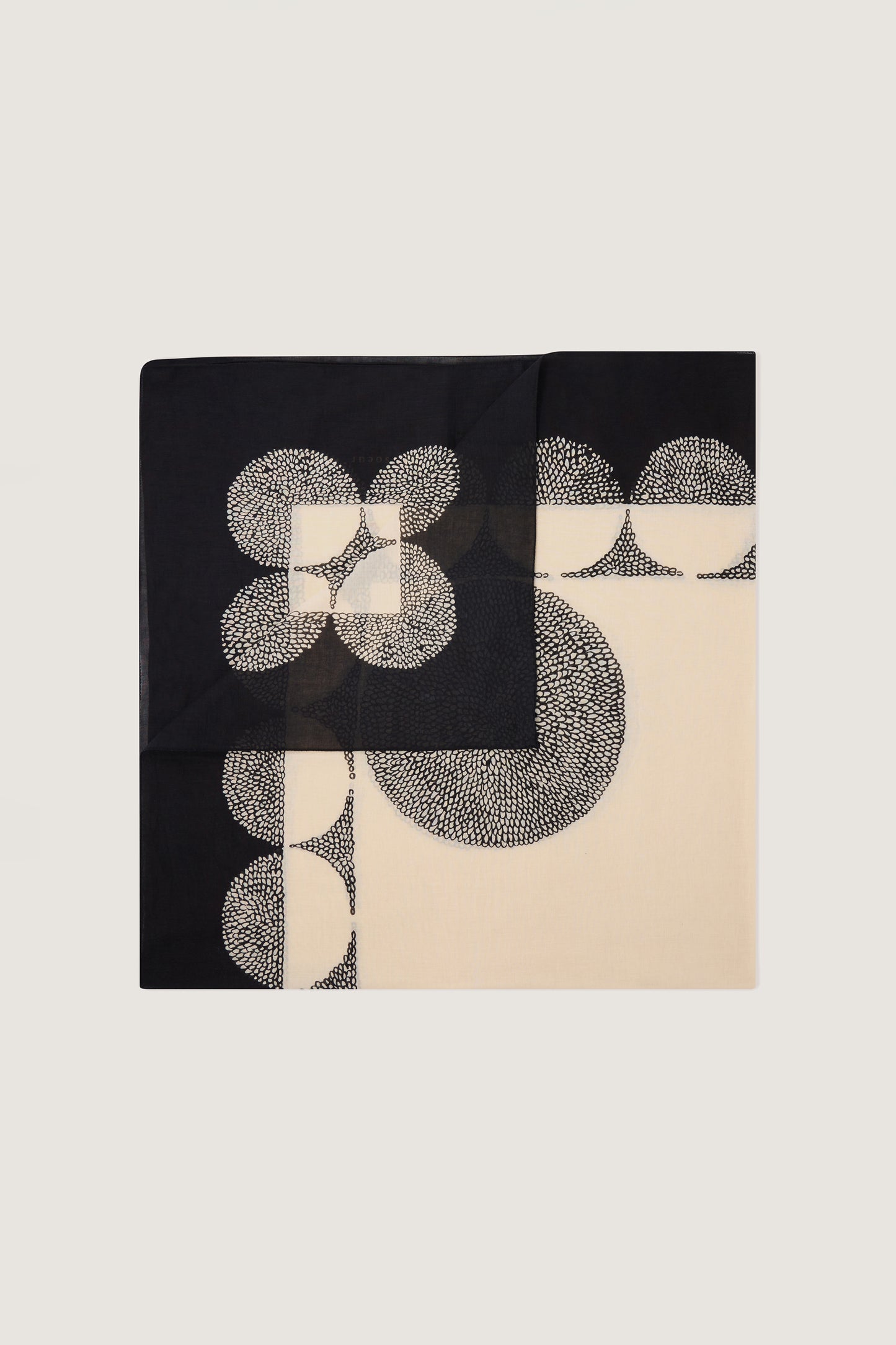 Foulard en voile de coton imprimé "Pochoir" écru/noir