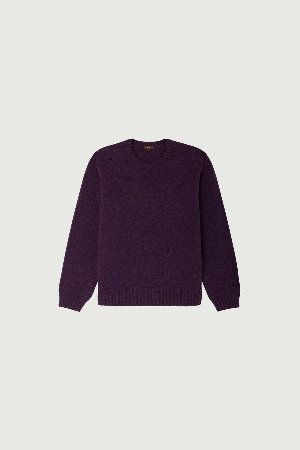 ISAMU est un pull droit, à l'encolure ronde, tricoté dans un fil de laine vierge shetland. Il rappelle les vêtements anglais, ses coloris sont faits de fils chinés qui dévoilent des nuances dans leurs teintes : un beau basique beige chiné, un bleu avec des touches de gris, un violet qui rappelle l'identité de Soeur, et un marron caramel chaud.